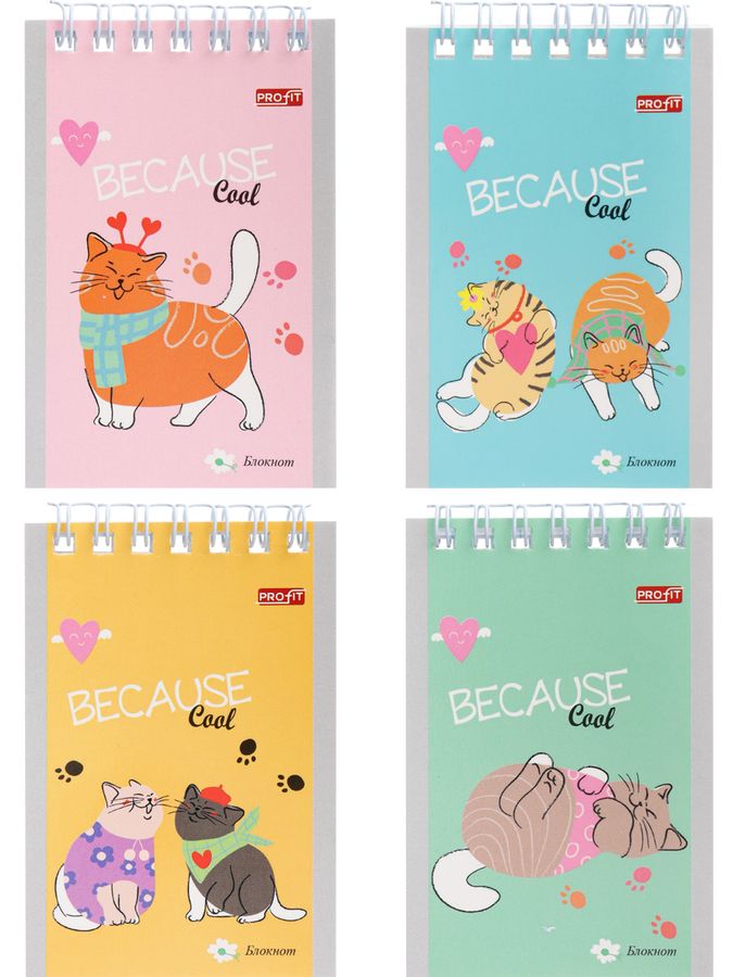 Блокнот А7 40л клетка гребень Кошачья улыбка ассорти PROFIT Б40-5726
