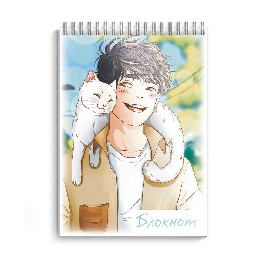 Блокнот, А7, 40 л, арт. 68170 ДРУЖБА С КОТОМ / Блок - белый офсет 65 г/м², клетка, гребень по короткой стороне, УФ-лак сплошной,