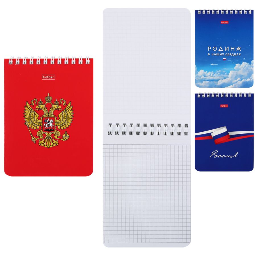 Блокнот А6 60л клетка гребень Россия УФ-лак ассорти HATBER 60Б6В1гр