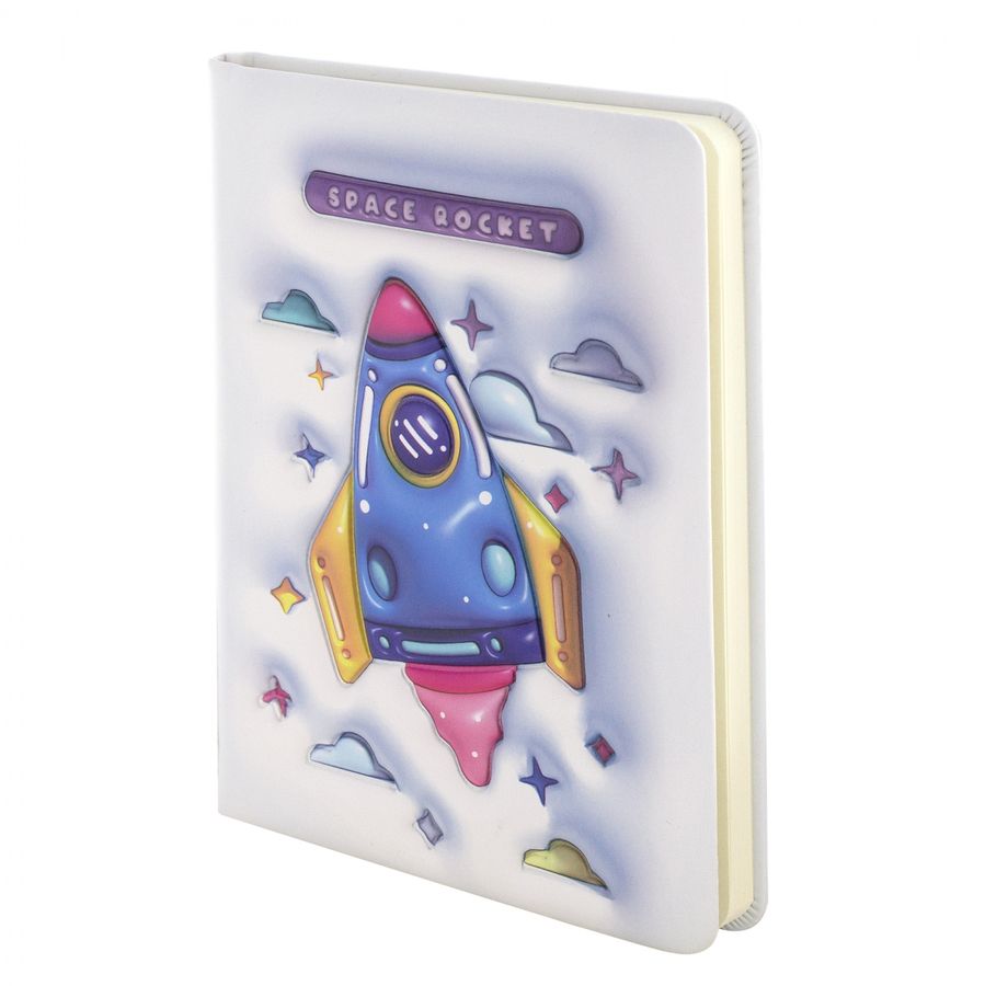 Подарочный блокнот 13,0 см * 18,0 см , 7БЦ, Alingar, PU, поролон, конгрев, эффект 3D, 80л., линия, "Ракета"