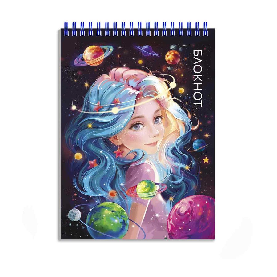 Блокнот арт. 69242 КРАСАВИЦА / А6, 80 л., гребень по короткой стороне, полноцветная печать, Блок - белый офсет, 60 г/м², клетка, цветной гребень