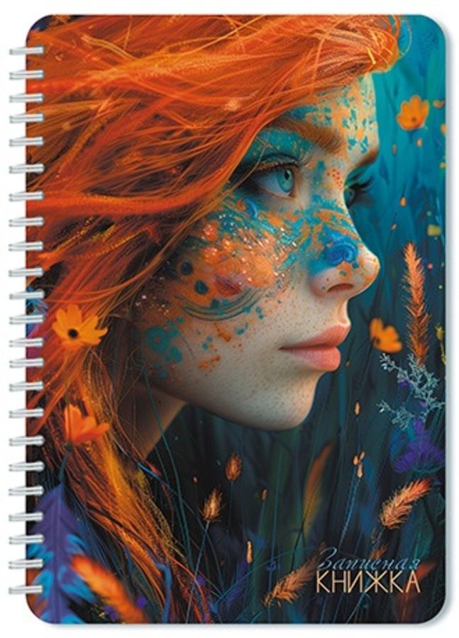Записная книжка, 40 листов, формат А5, клетка, плотность 60 гр/м2. Внутренний блок - высококачественная белая офсетная бумага. Обложка - мелованный картон, полноцветная печать с защитным ВД-лаком. Крепление - металлическая евроспираль сбоку, по длинной стороне.