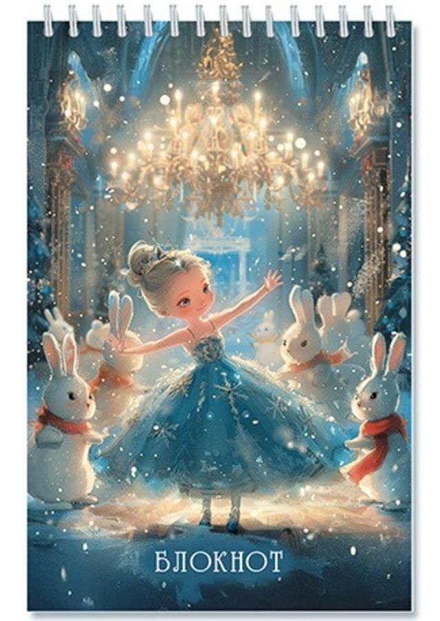 Блокнот на гребне, 48 листов, формат А5, клетка, плотность 60 гр/м2. Внутренний блок - высококачественная белая офсетная бумага. Обложка - мелованный картон, полноцветная печать с лакированием блестками. Крепление - металлическая евроспираль сверху.