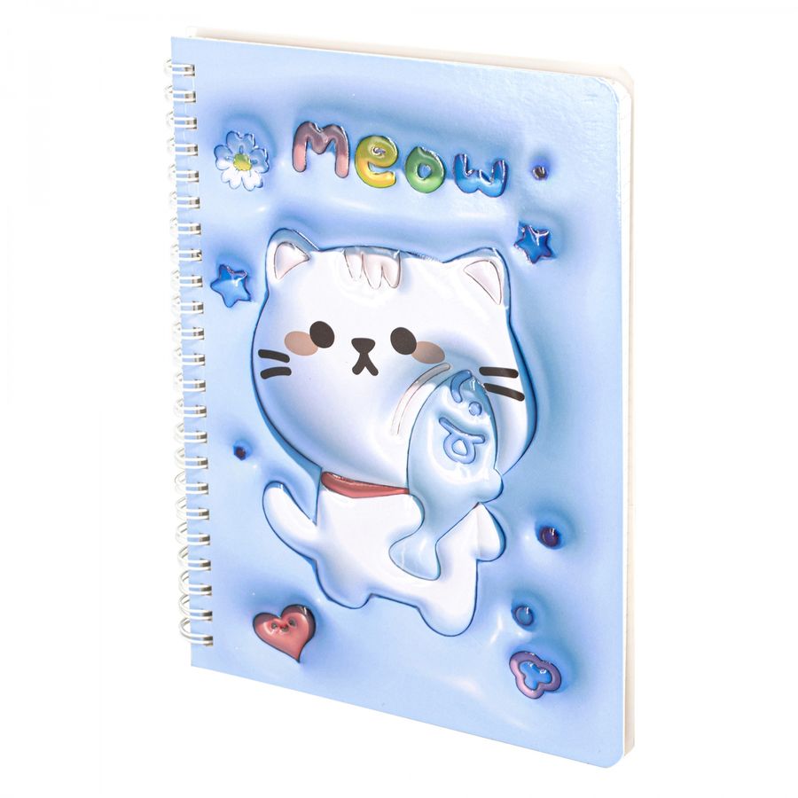 Подарочный блокнот 14,5 см * 20,5 см , гребень, Alingar, ламинация, конгрев, эффект 3D, 60 л., клетка, "Котик", голубой AL11686.