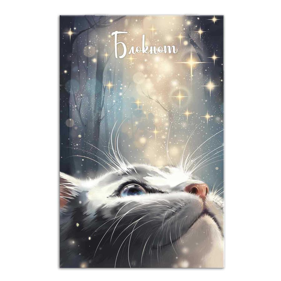 Блокнот, А5, 40 л, арт. 69255 КОТ СО ЗВЕЗДАМИ / Блок - белый офсет 60 г/м², клетка, мягкий переплёт (2 скобы)