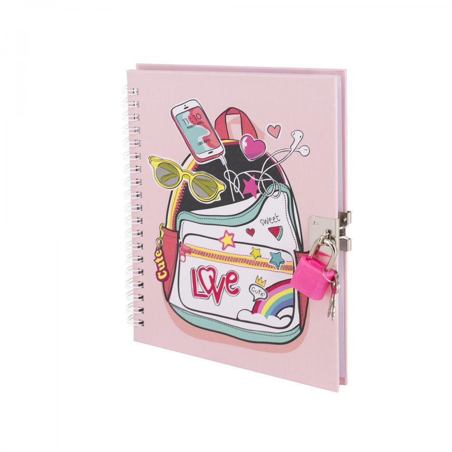Блокнот с замком 130х180мм 46л клетка гребень тв.обл. Модные штучки Рюкзак ALINGAR AL11809
