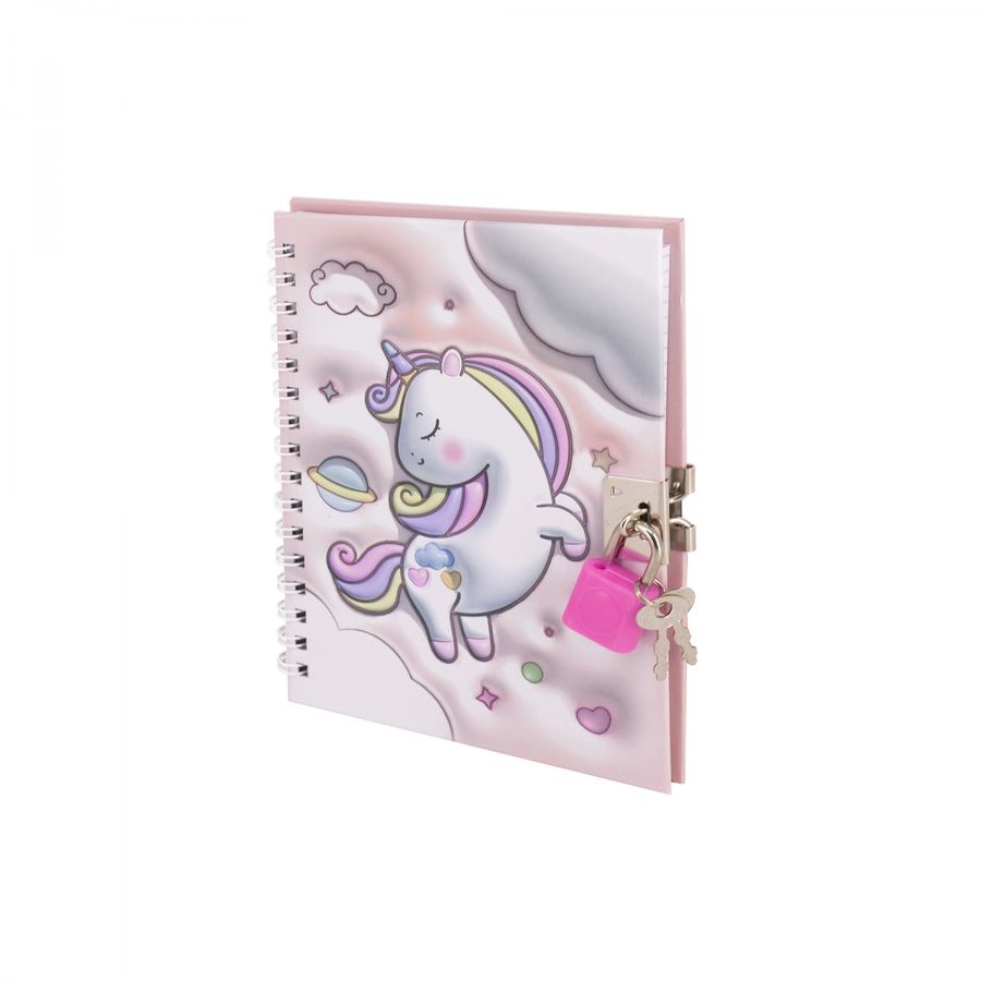 Подарочный блокнот 11,0 см * 15,0 см , гребень, Alingar, ламинация, эффект 3D, замочек, 46 л., клетка, "Малыш единорог", бежевый
