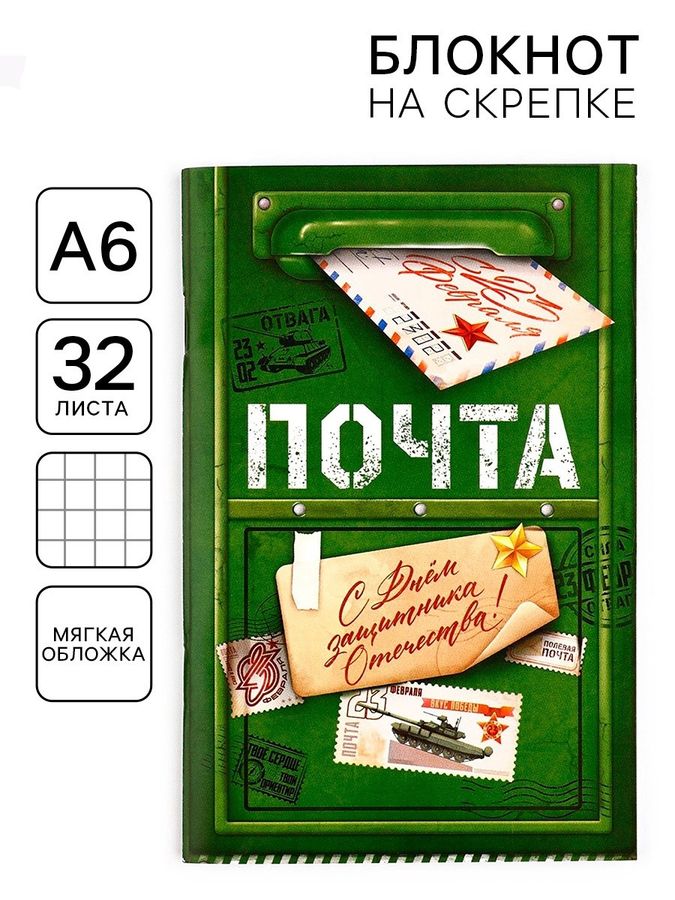 Блокнот А6 32л клетка скрепка Почта С 23 февраля ArtFox 10048477