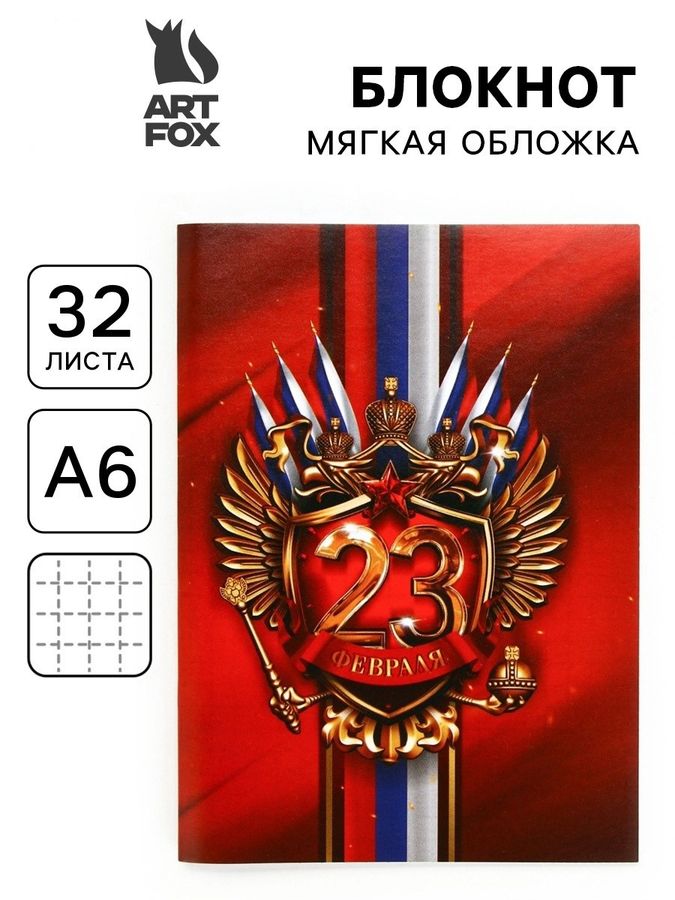 Блокнот А6 32л клетка скрепка 23 Февраля ArtFox 10708595