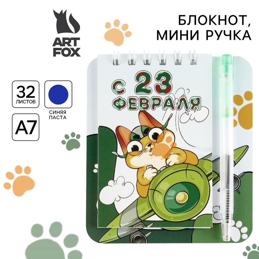 Набор Блокнот А7 32л без линовки гребень + Ручка С 23 февраля Кот ArtFox 9272693