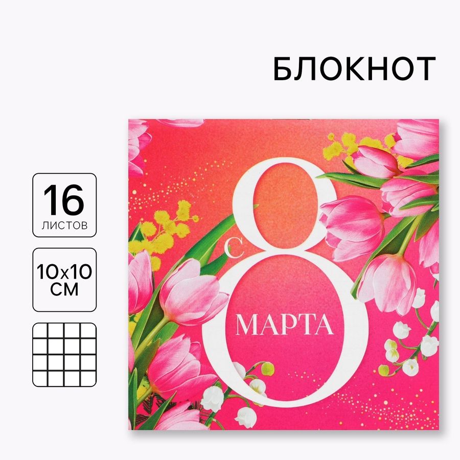 Блокнот 100х100мм 16л клетка скрепка С 8 Марта ArtFox 10018399