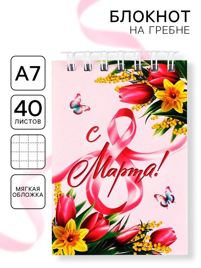 Блокнот А7 40л клетка гребень мягк.обл. С 8 Марта ArtFox 10708581