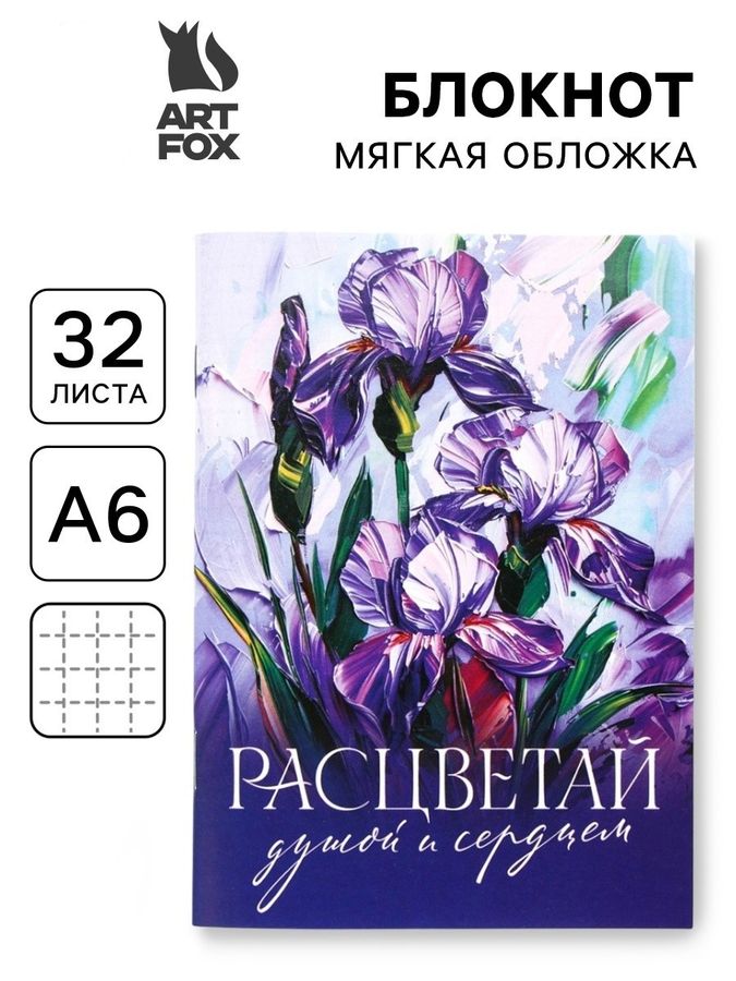 Блокнот А6 32л клетка скрепка Ирисы ArtFox 10708587