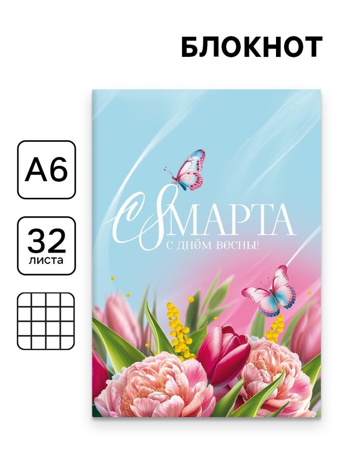 Блокнот А6 32л клетка скрепка С 8 Марта ArtFox 10708591