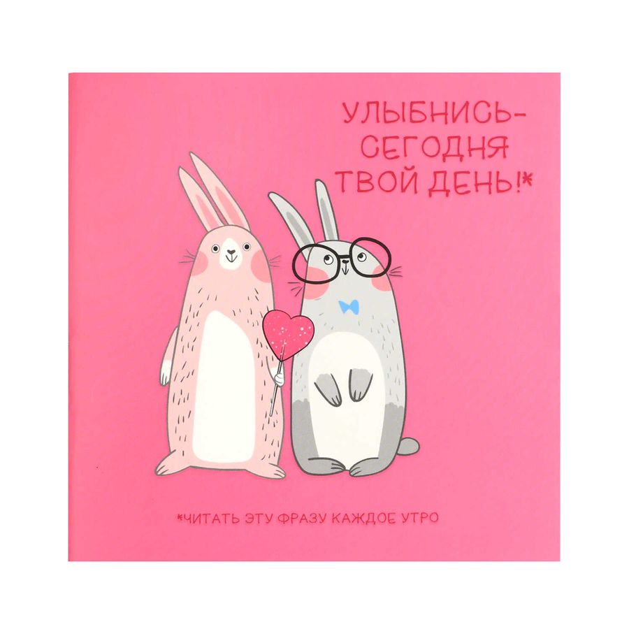 Блокнот, 130х130 мм, 32 л, арт. 70468 ЗАЙЦЫ / Блок - белый офсет 65 г/м², дизайнерский блок , мягкий переплёт, выборочный УФ-лак,