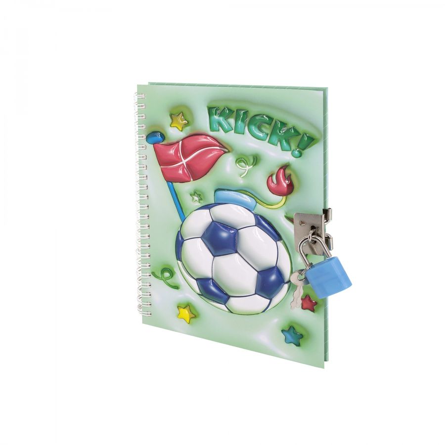 Блокнот с замком А6 45л клетка гребень тв.обл. Футбол 3D ALINGAR AL11727