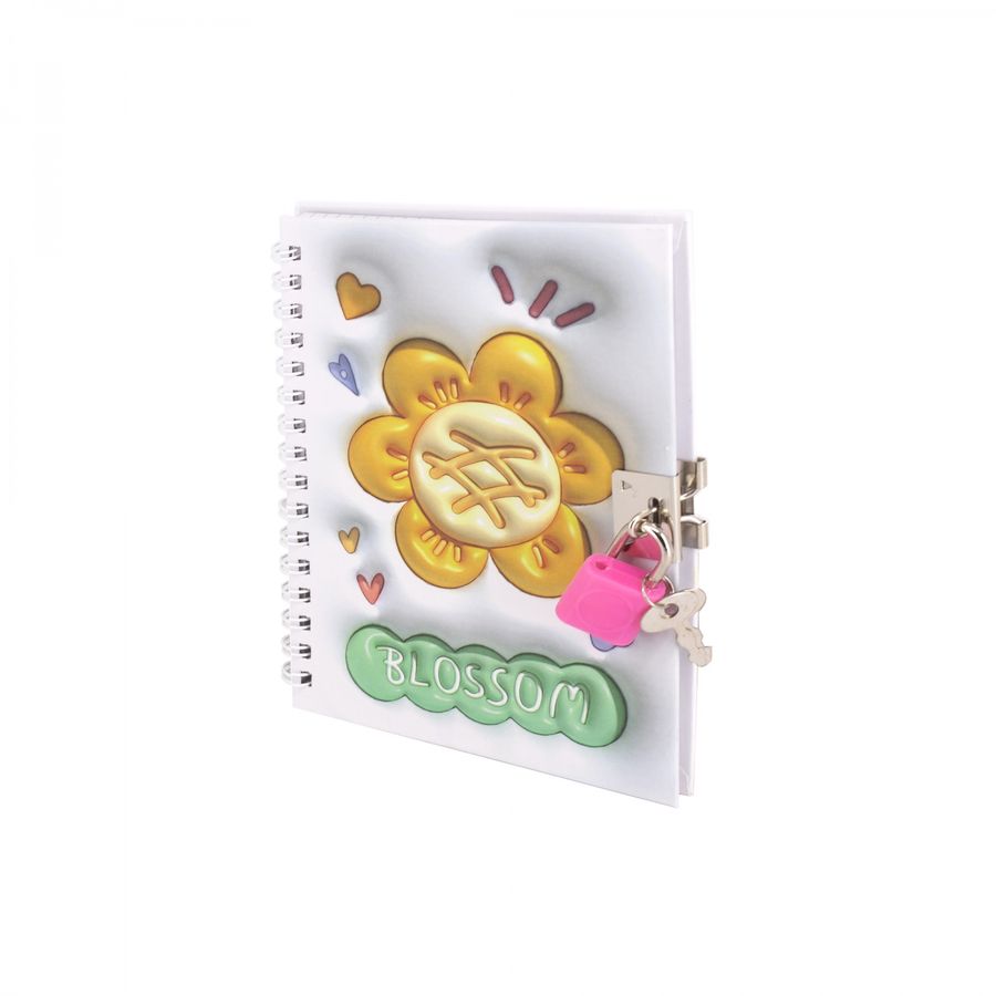 Подарочный блокнот 11,0 см * 15,0 см , гребень, Alingar, ламинация, эффект 3D, замочек, 46 л., клетка, "Подсолнух"