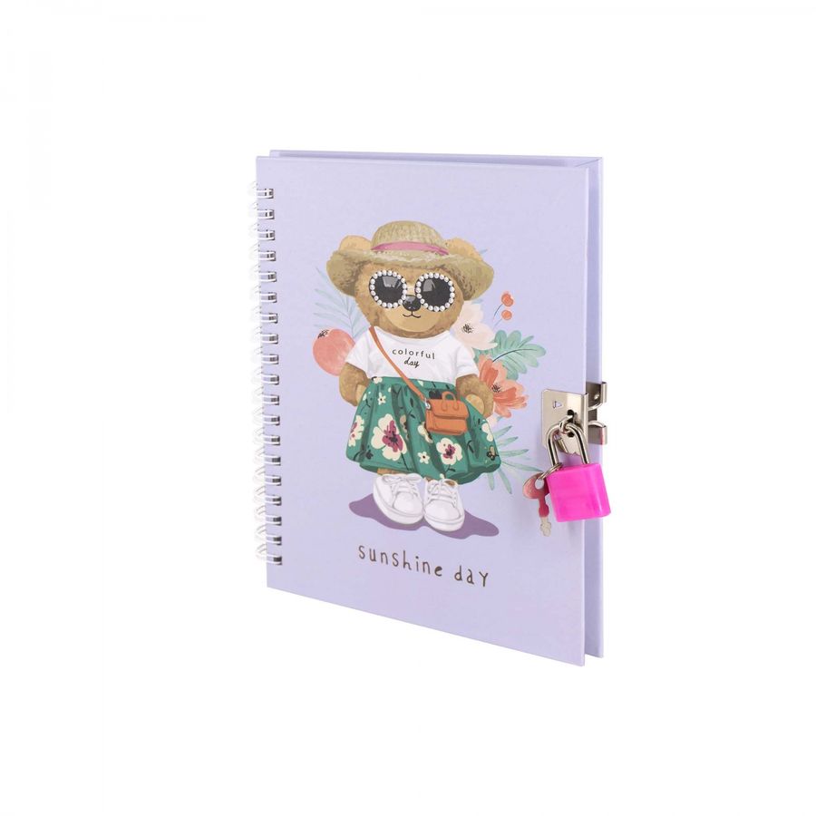 Блокнот с замком А6 45л клетка гребень тв.обл. Мишка-модница ALINGAR AL11811
