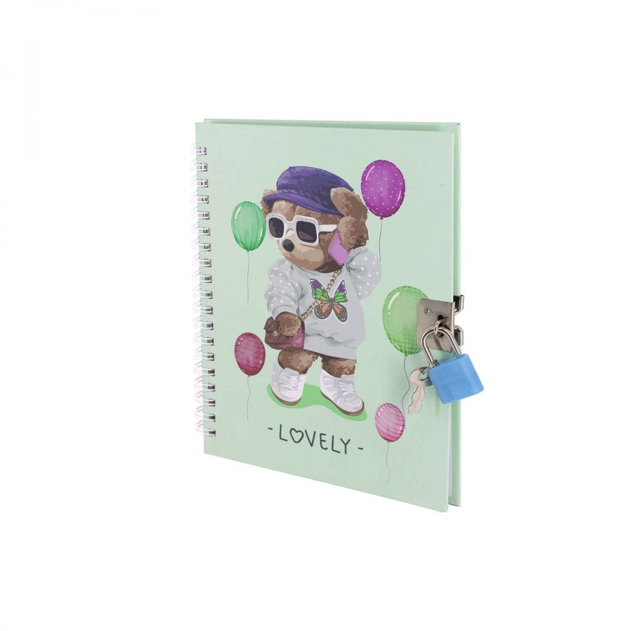 Блокнот с замком А6 45л клетка гребень тв.обл. Мишка-модница ALINGAR AL11813