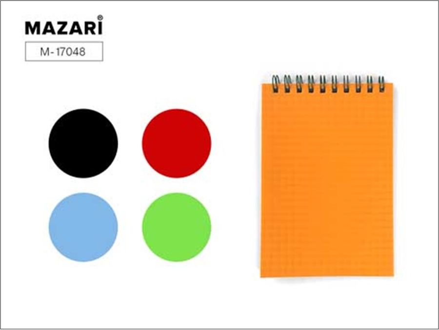 Блокнот А6 80л клетка гребень пласт.обл. ассорти MAZARI M-17048