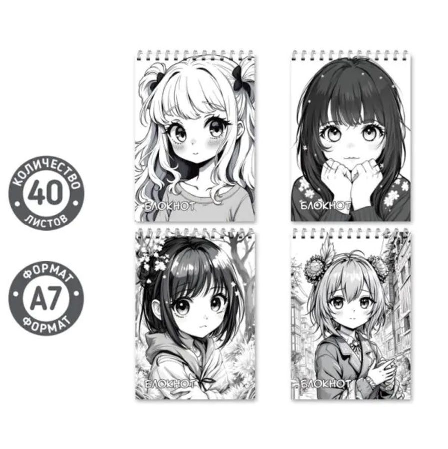 Блокнот А7 40л клетка гребень мягк.обл. Аниме ассорти MAZARI M-17157