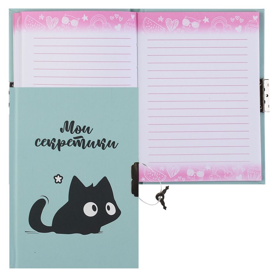 Книжка записная А6 56л линия тв.обл. Котомания с замком мат.лам. Кокос 242392