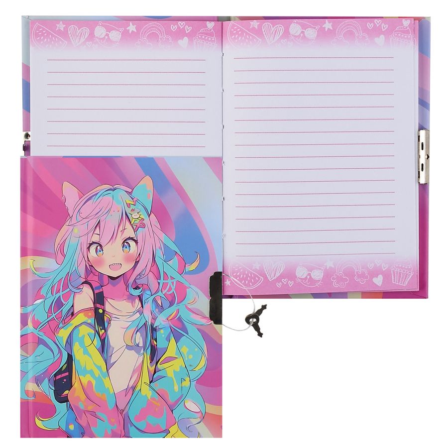 Книжка записная А6 56л линия тв.обл. Anime neon с замком мат.лам Кокос 242391