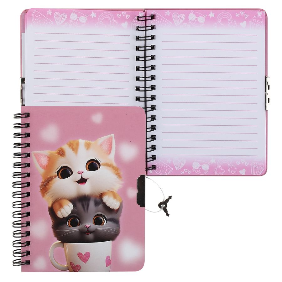 Книжка записная А6 60л линия гребень тв.обл. Cute cats с замком мат.лам Кокос 242393