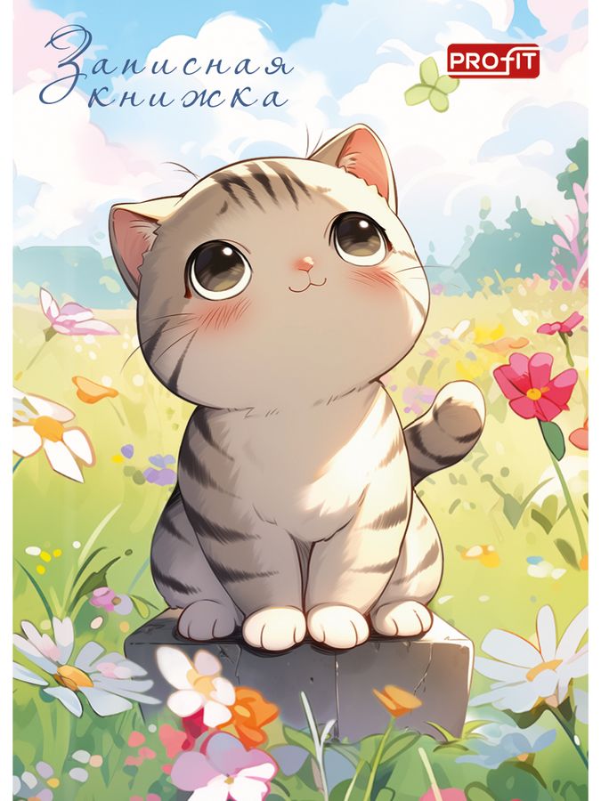 Книжка записная А7 48л клетка тв.обл. Котенок в поле глянц.лам. PROF-PRESS 48-1713