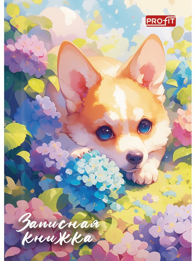 Книжка записная А7 48л клетка тв.обл. Милый корги в цветах глянц.лам. PROFIT 48-1718