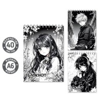 Блокнот, формат А6, 60 листов, обложка – картон, ВД-лакирование, мелованная бумага, чистый лист, металлический гребень.