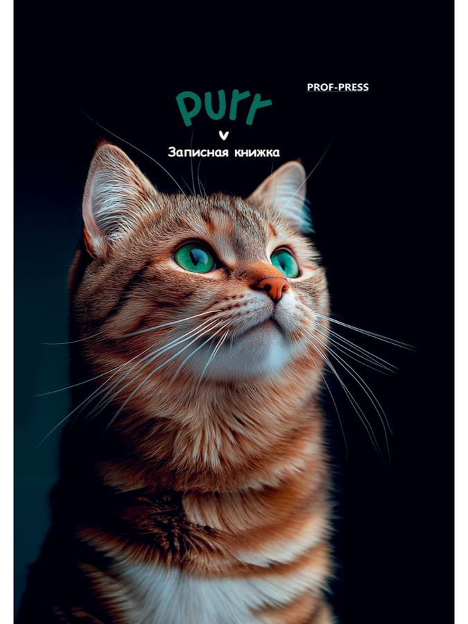 Книжка записная А7 48л клетка тв.обл. Зеленоглазый котик глянц.лам. PROF-PRESS 48-8633