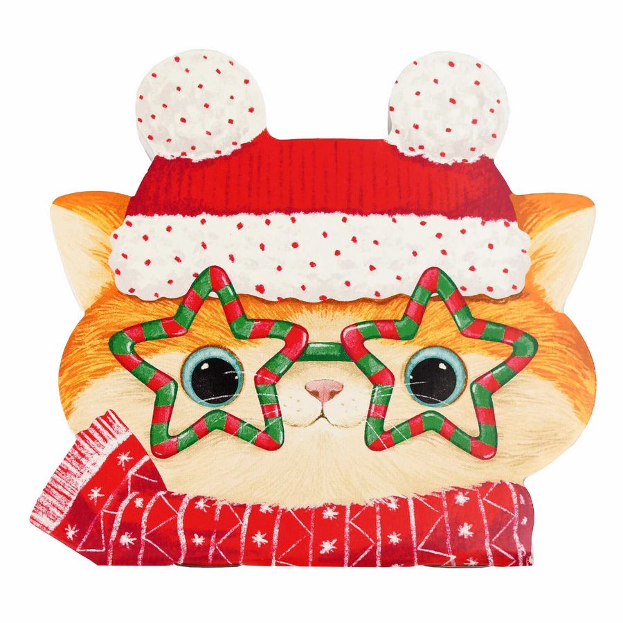 Блокнот 30л арт. 69607/ 10 НОВОГОДНИЙ РЫЖИЙ КОТ /120х117 мм, фигурная вырубка, мягкий переплёт (1 скоба). вн.блок - белый офсет, без печати. Обложка - мелованный картон 190 г/м²