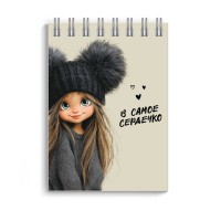 Блокнот, А7, 40 л, арт. 70961 БЛОНДИНКА С КОТОМ / Блок - белый офсет 60 г/м², клетка, гребень по короткой стороне, УФ-лак выборочный с глиттером