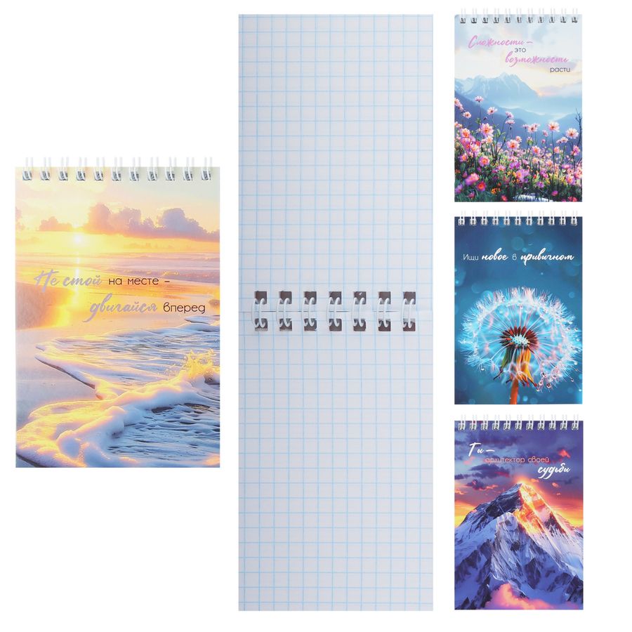 Блокнот А6 40л клетка гребень мягк.обл. Природа ассорти 4 диз. Кокос 252784