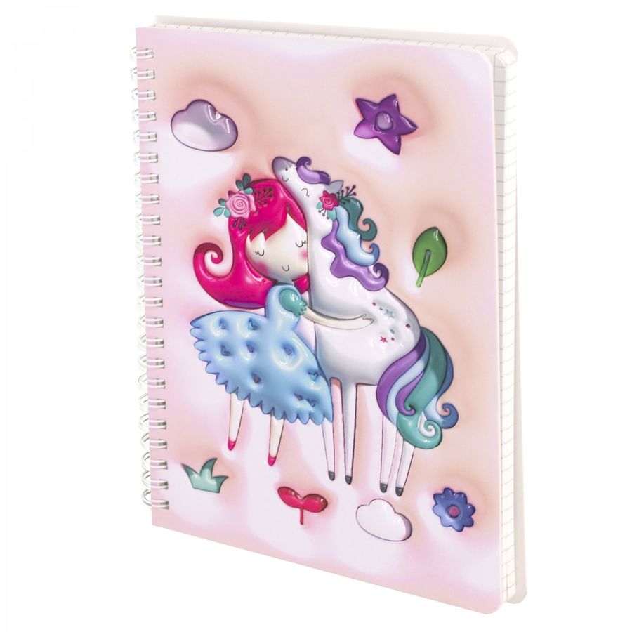 Подарочный блокнот 14,5 см * 20,5 см , гребень, Alingar, ламинация, конгрев, эффект 3D, 60 л., клетка, "Принцесса", розовый AL11681