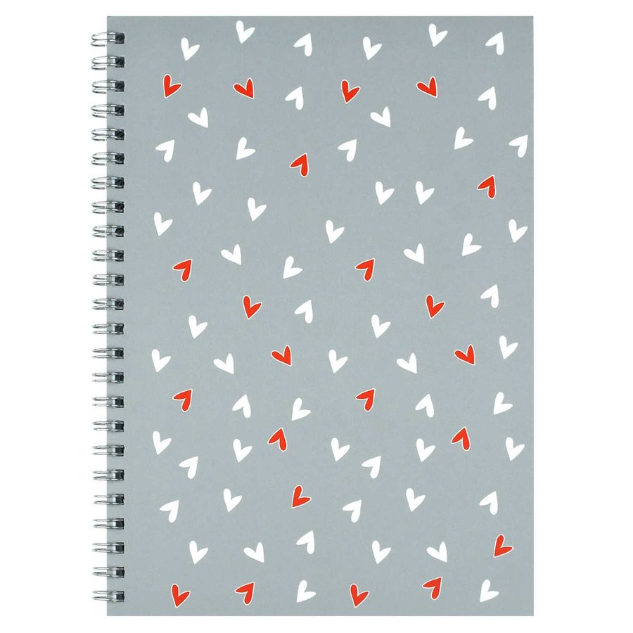 Блокнот, А5, 48 л, арт. 72704 СЕРДЕЧКИ НА СЕРОМ / Блок - белый офсет 80 г/м², клетка, гребень по длинной стороне, матовая ламинация/