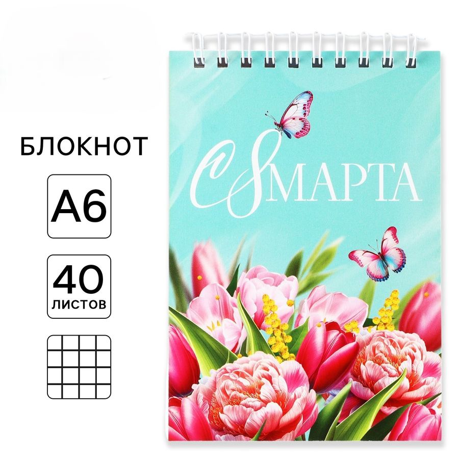 Блокнот А6 40л клетка гребень мягк.обл. С 8 Марта ArtFox 10708557