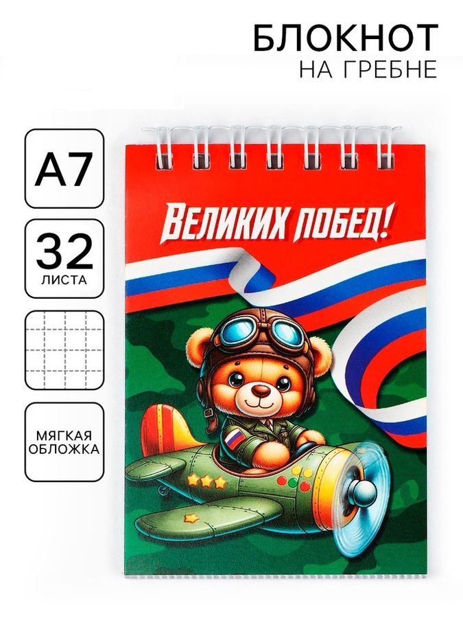 Блокнот А7 32л клетка гребень мягк.обл. Великих побед ArtFox 10708582