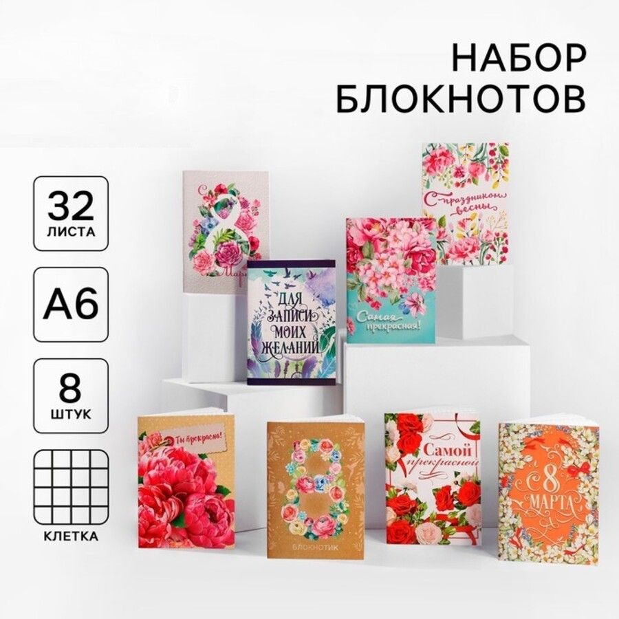 Блокнот А6 32л клетка скрепка мягк.обл. К 8 марта ассорти цена за 1шт ArtFox 2952085