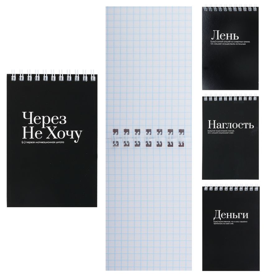 Блокнот А6 40л клетка гребень мягк.обл. Приколы на черном ассорти 4 диз. Кокос 252789