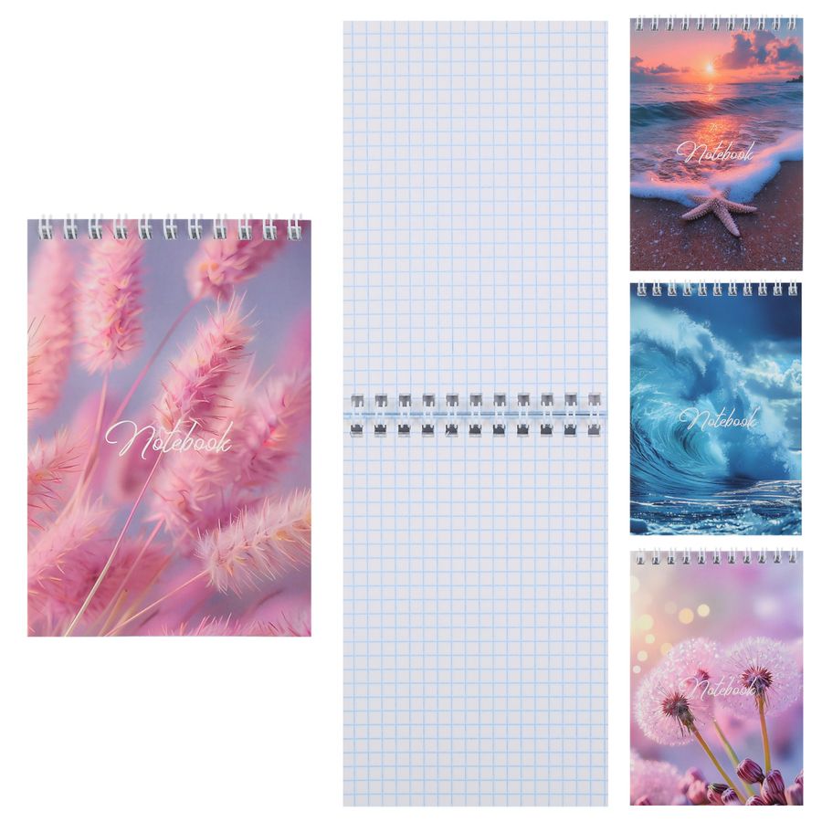 Блокнот А6 40л клетка гребень мягк.обл. Природная нежность ассорти 4 диз. Кокос 261891