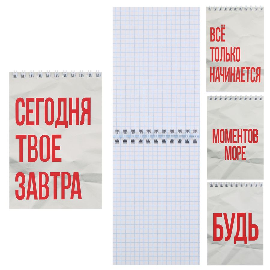 Блокнот А6 40л клетка гребень мягк.обл. Мотивация ассорти 4 диз. Кокос 261896