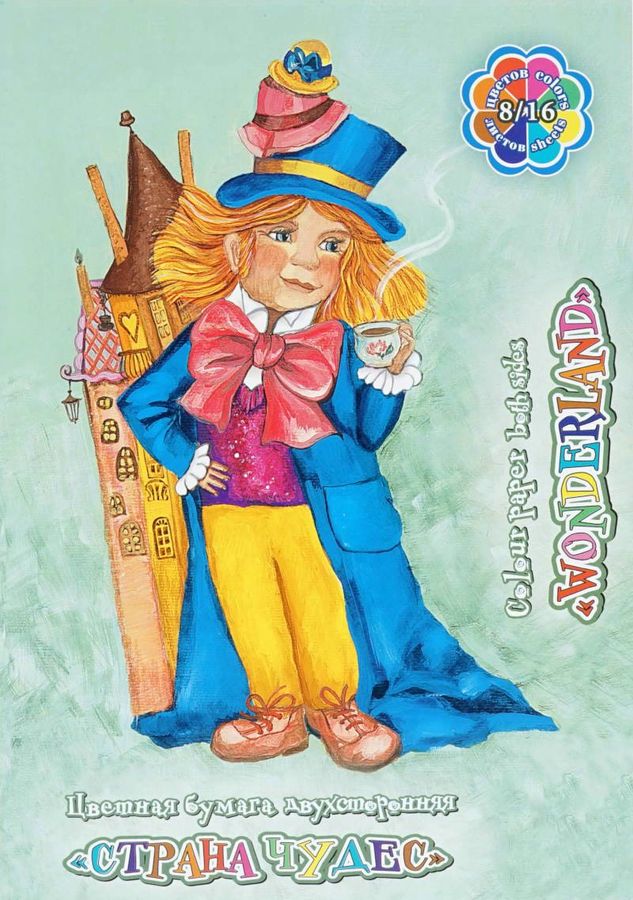 Бумага цветная А4 16 листов 8 цветов двухсторонняя Страна чудес ЦБ-0823