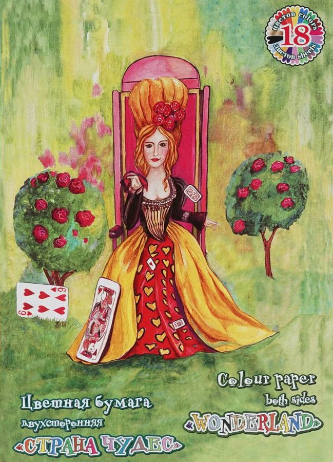 Бумага цветная А4 18л 18 цветов двухсторонняя Красная королева.Страна чуде ЦБ-3558