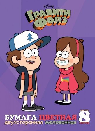 Бумага цветная А4 8л 8 цветов двухсторонняя мелованная Гравити Фолз 8Бц4м_25035