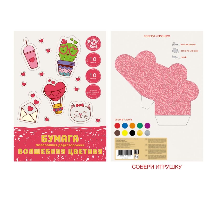 Набор цветной двухсторонней мелованной бумаги. Формат: 205x290 мм. Количество листов: 10. Количество цветов: 10. Папка с карманом. Обложка: мелованный картон.