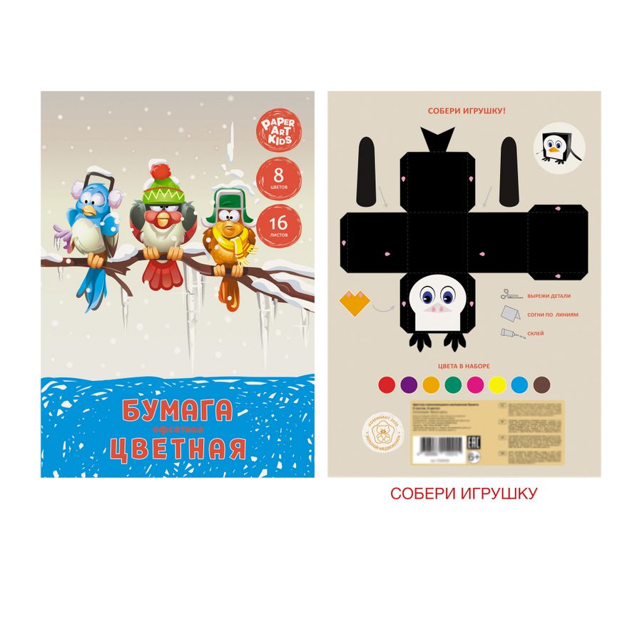 Бумага цветная, . Формат: А4. Крепление: скрепка. Количество листов: 16. Количество цветов: 8.