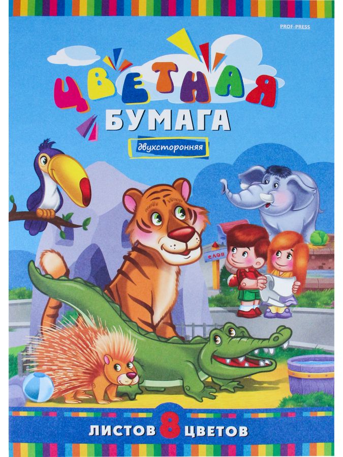 Цветная бумага от компании "Проф-Пресс" отлично подойдет для детского творчества. С ее помощью можно создать красочные поделки, аппликации, коллажи, а также объёмные поделки и оригами. Ребенок, работая с цветной бумагой, развивает мелкую моторику и художественное воображение. 8 листов двухсторонней разноцветной бумаги (8 цветов) соединены скрепкой.