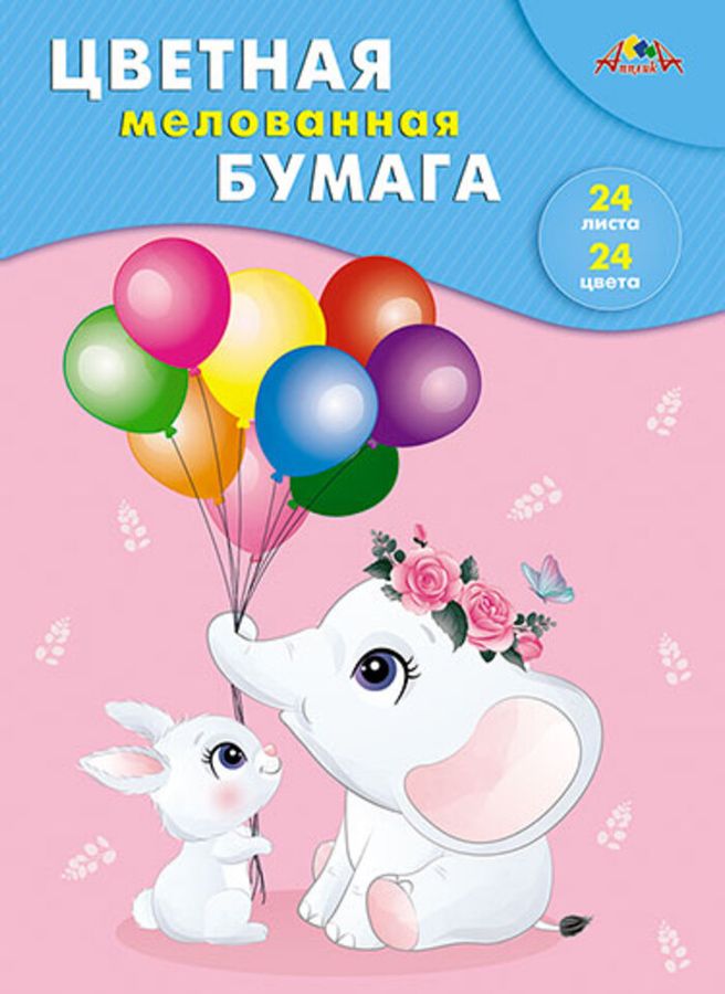 Бумага цветная А4 24л 24цв мелованная Воздушные шарики 60г/м2 АППЛИКА С1233-13